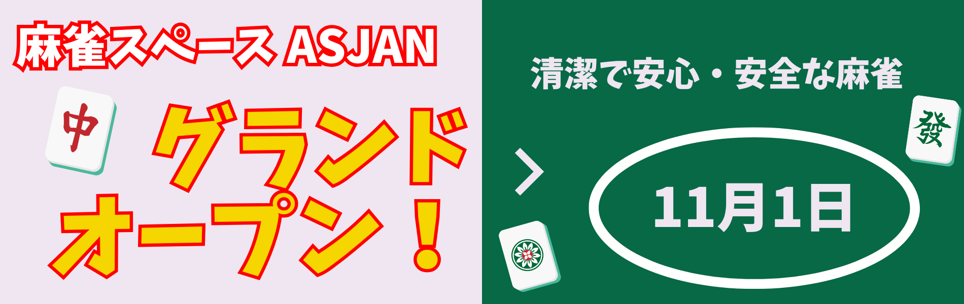 ASJANは、麻雀を「より身近で、安心して楽しめる空間」として地域の皆さまに愛される場所を目指しています。
